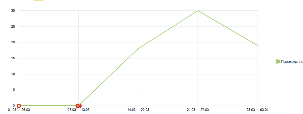 За первую неделю после запуска РК количество конверсий (запросов на консультацию) достигло 18, затем увеличение продолжилось и за вторую неделю составило 30. В последнюю неделю число конверсий немного уменьшилось и составило 19