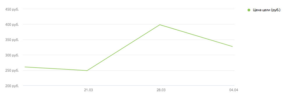 Начальная цена конверсии в первую неделю составляла 250 рублей, в следующую неделю выросла до 398 рублей, в ходе активной работы с РК цена постепенно стала снижаться и на данный момент составляет 330 рублей