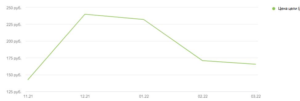 Начальная цена обращения составляла 140 рублей, затем выросла до 230 рублей, в ходе продвижения активной работы с РК удалось постепенно снизить цену до 167 рублей и удерживать на этом уровне