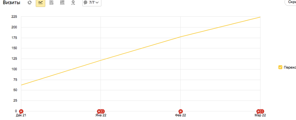 Количество конверсий после оптимизации также уверенно увеличивалось от 60 в месяц до 220 в месяц.